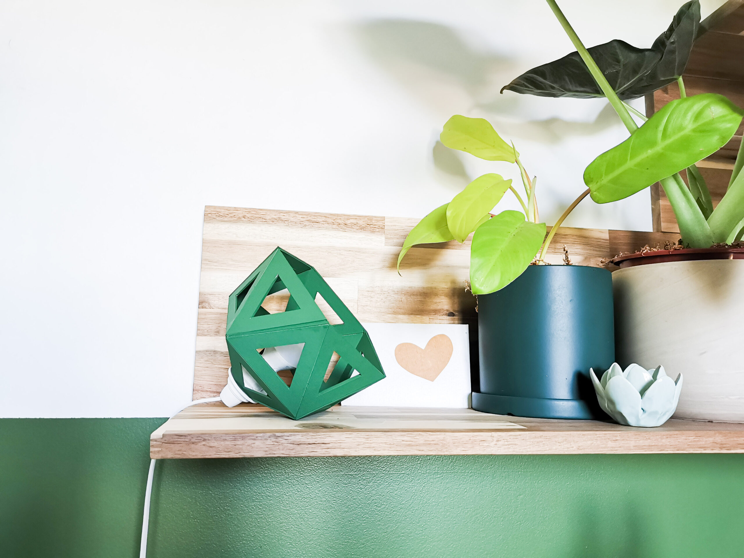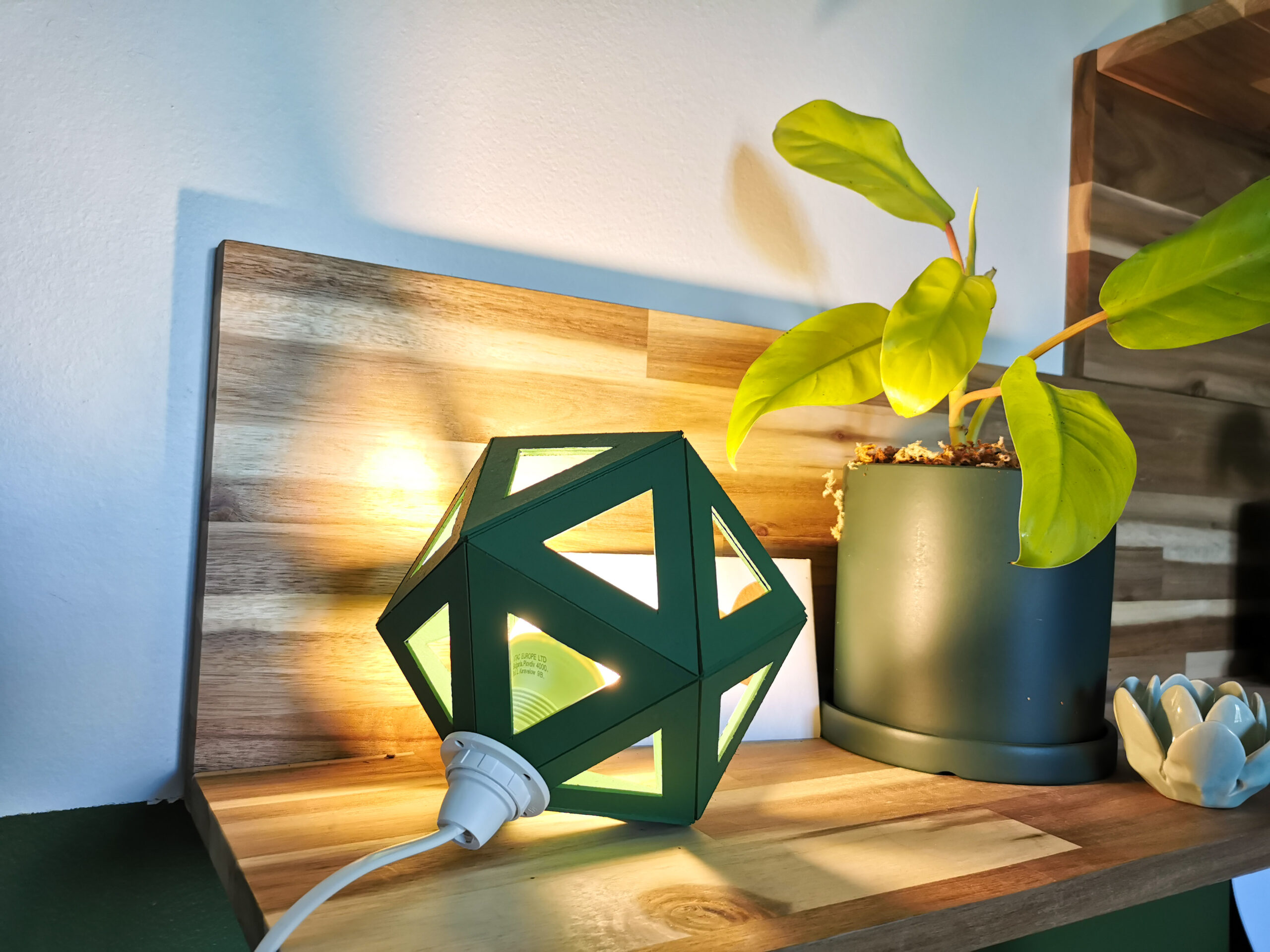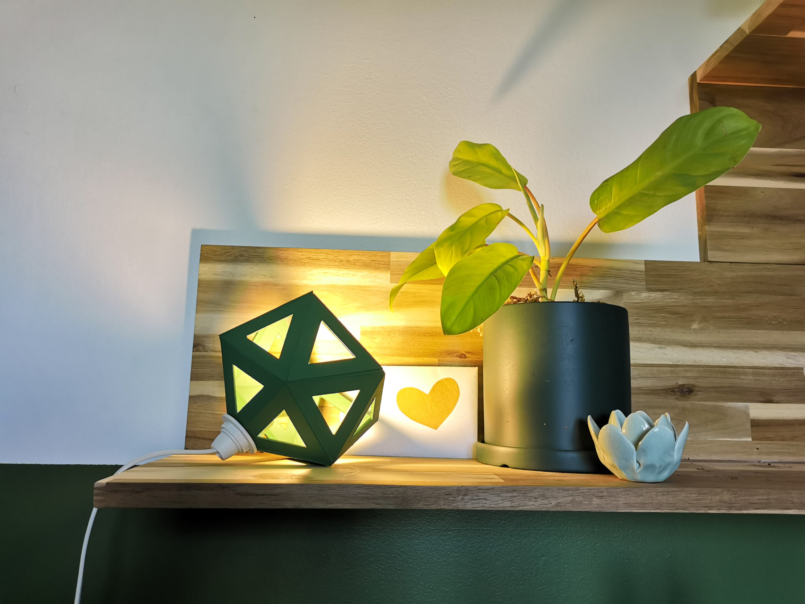 La forme facettée et les découpes de la lampe origami offrent des projections lumineuses originales.