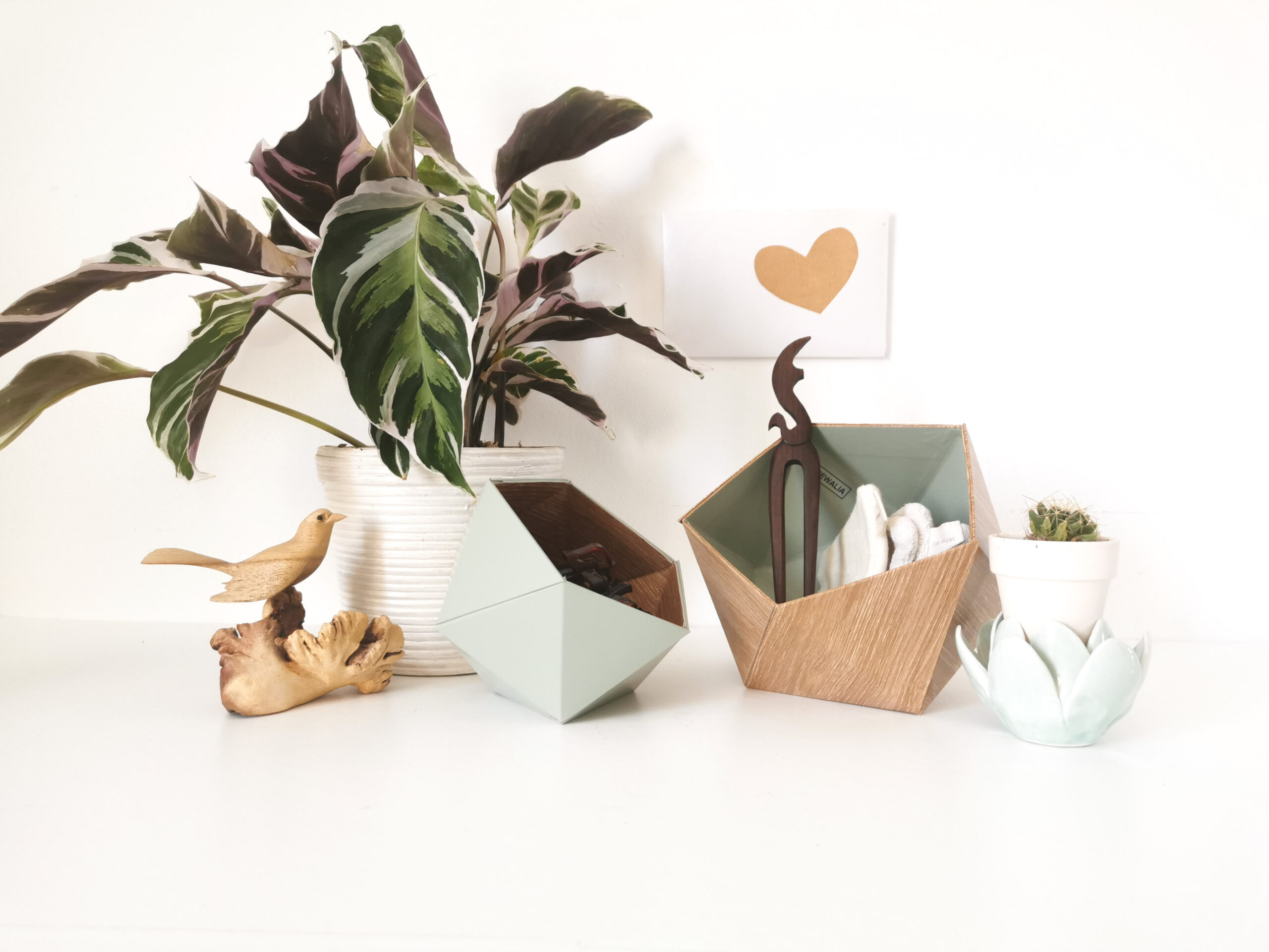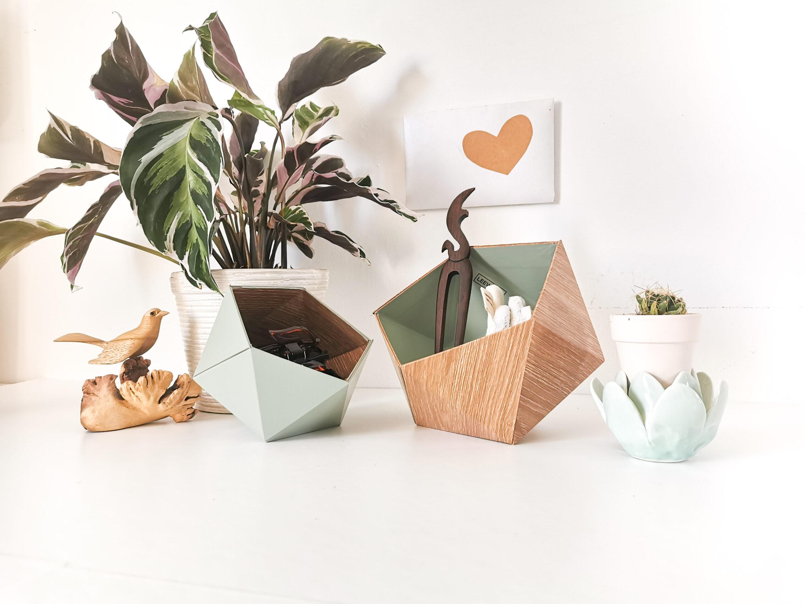 Vide-poches Origami bois et vert Fabriqués en France
